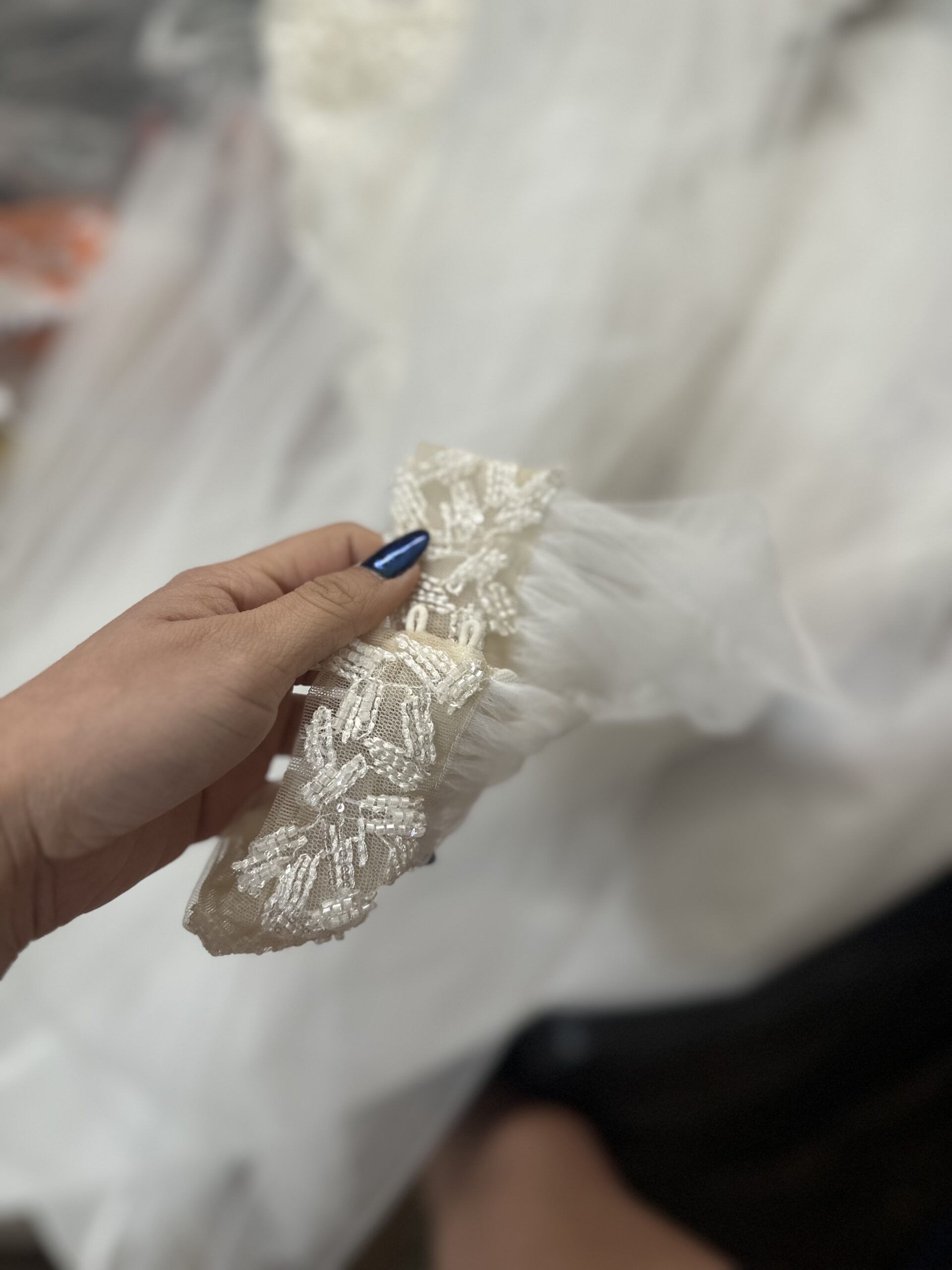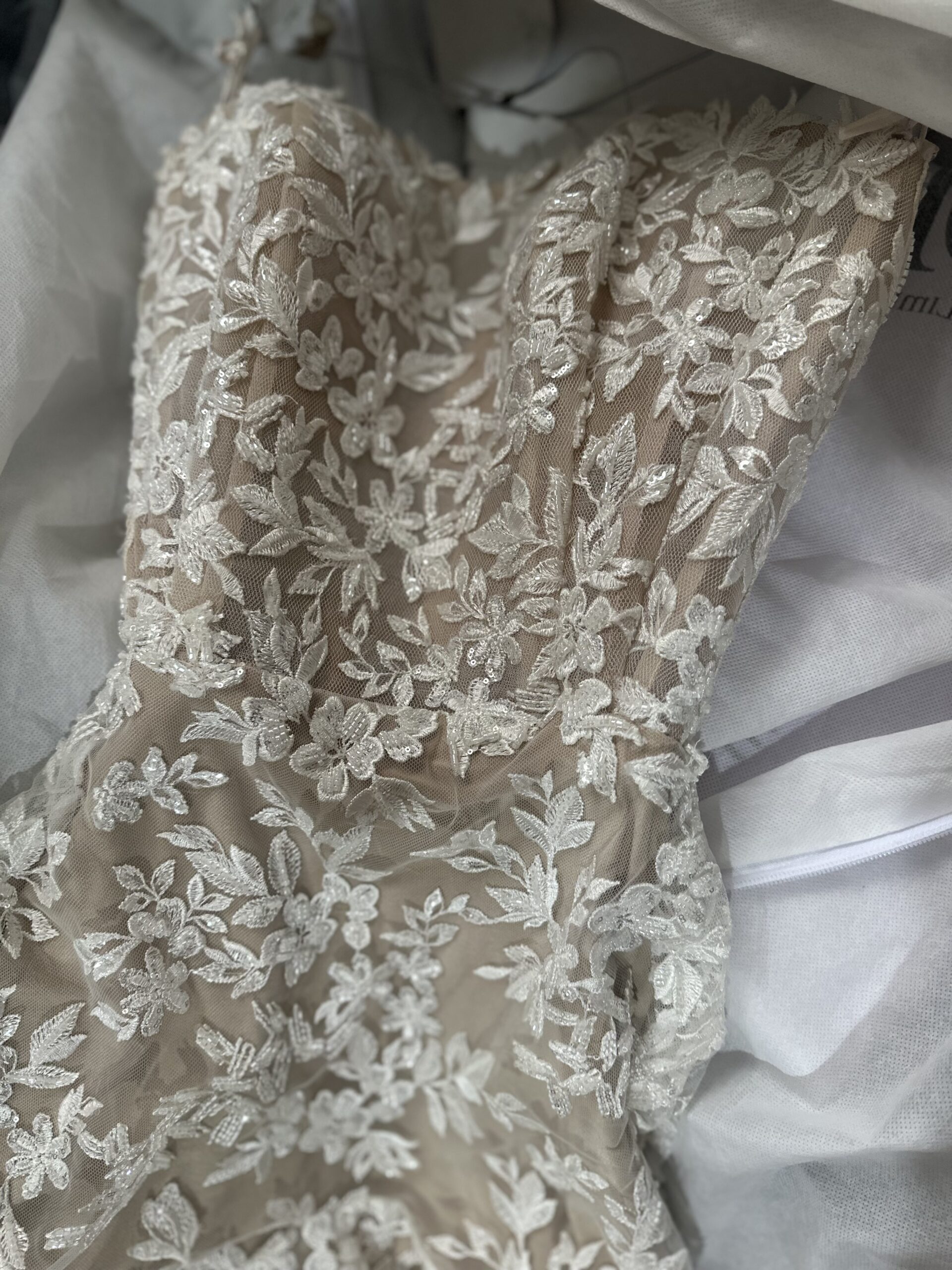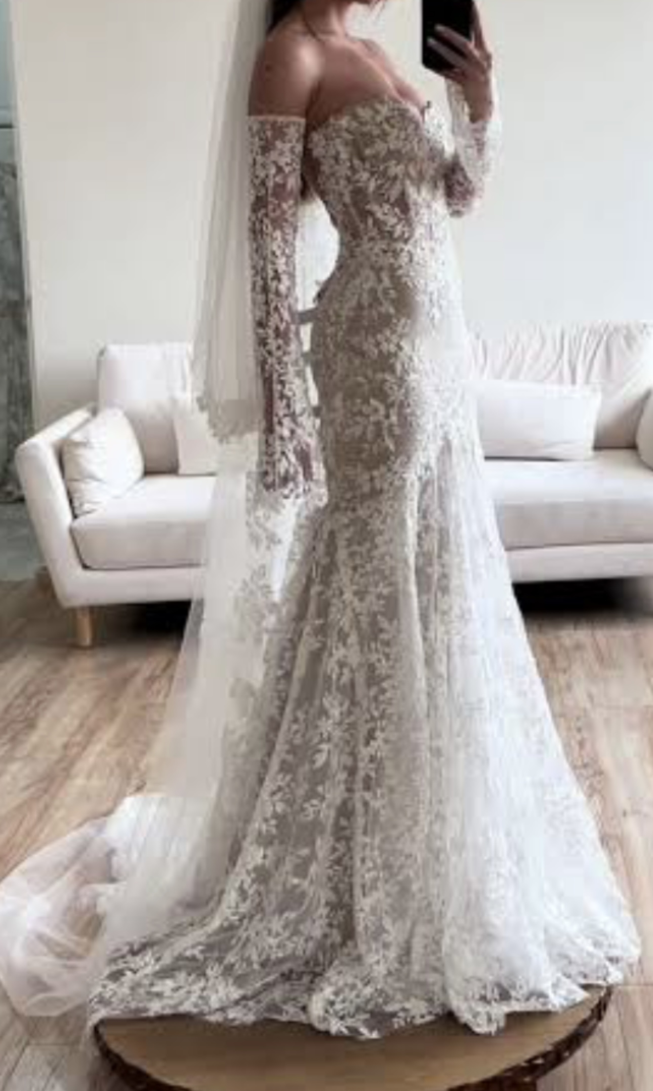 El vestido es precioso, cuenta con sus mangas y el choker.